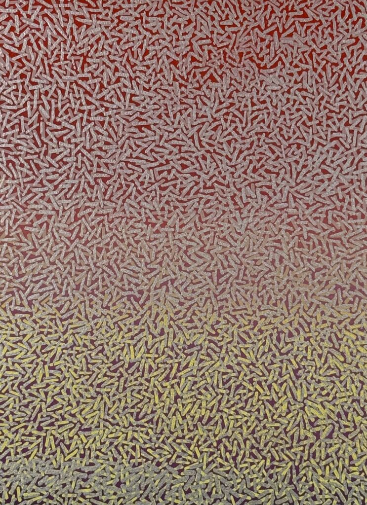 Mixed media on archival paper, flush-mounted on wood panel
